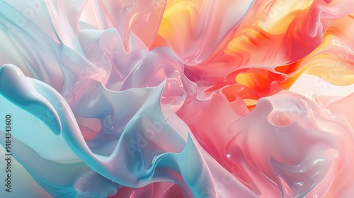 Abstract flowing fabric with vibrant color tones. Dynamic textile design. Background image of swirling colorful watercolor in fluid texture. Close up of material waving and flowing motion. AIG51.