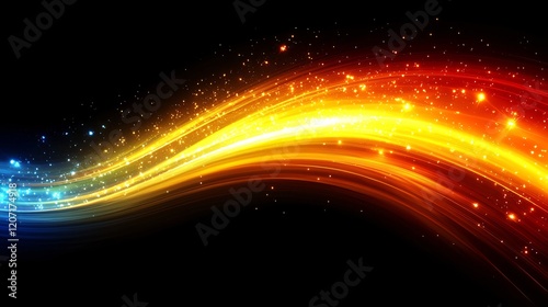 Abstract flowing light with bright colors and sparkling particles against a dark background