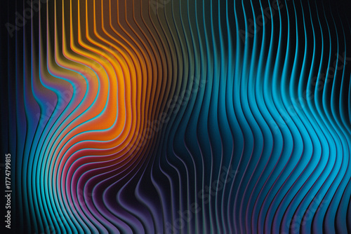Abstract flowing lines of vibrant orange and electric blue light create a mesmerizing and futuristic digital art background