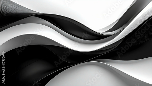 Abstract flowing monochrome layers create a dynamic, wave-like effect with textural details