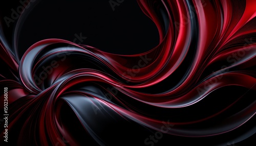 Abstract flowing red and black swirling lines creating dynamic smooth curves and glossy effects