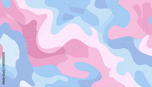 Abstract, flowing shapes in pastel shades of pink and blue