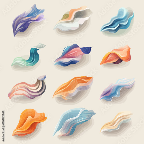 Abstract Flowing Swirls Design Elements in Diverse Colors on Beige Background