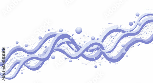 Abstract flowing wave-like lines and spheres creating a dynamic and ethereal visual on a white background