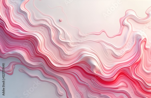 Abstract fluid art design using light pink, white colors. Liquid marble effect. Acrylic painting with rose shiny gradient. Smooth flowing wavy lines create captivating pattern. Ideal for backgrounds,