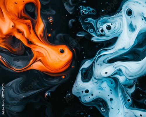 Abstract Fluid Art Swirling Orange and Blue Acrylic Paint Dynamic Color Mix Modern Art Background