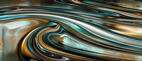 Abstract fluid art with teal and gold swirls, creating a dynamic and mesmerizing visual effect, perfect for modern decor or digital designs.