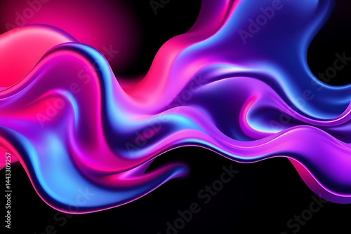 Abstract Fluid Wave: Luminous Pink, Purple and Blue Gradient on Black, 3D Rendered Illustration