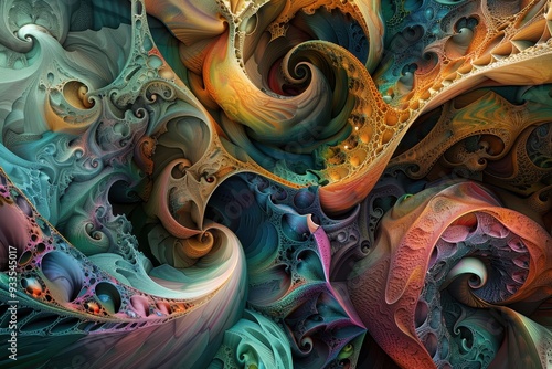 Abstract Fractal Artwork with Intricate Swirling Patterns and Vibrant Colors
