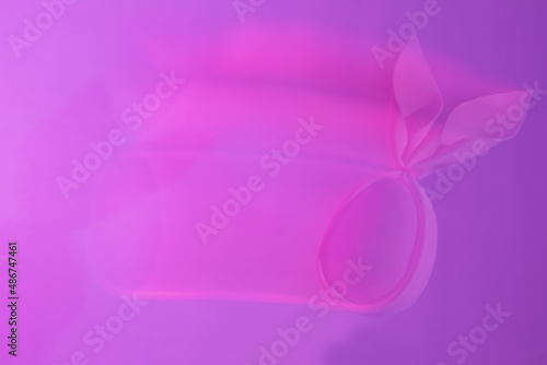 Abstract frame-washed background of neon holographic purple color trek of pink egg with rabbit ears. Creative handmade concept.