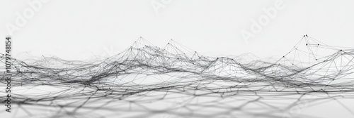 Abstract Futuristic 3D Wireframe Landscape of Data Flow and Digital Networks
