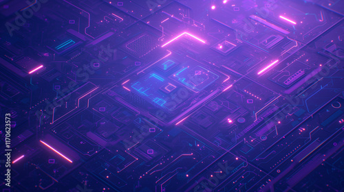 Abstract futuristic background in dark colors. Purple abstract microcircuits and processors. AI generative