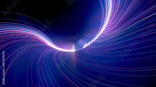 Abstract futuristic background with swirling neon light trails creating a dynamic energy vortex for technology concepts