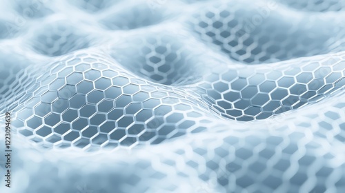 Abstract futuristic blue and white technology background with hexagonal patterns and glowing digital elements, symbolizing innovation