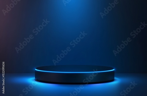 Abstract futuristic blue technology background with glowing circular podium and hologram elements for product presentation in a virtual space, a digital concept of a future cyber tech design stage