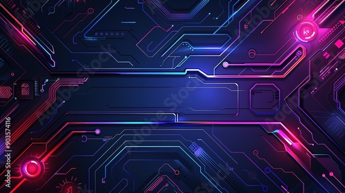 Abstract Futuristic Circuit Board with Glowing Neon Lines