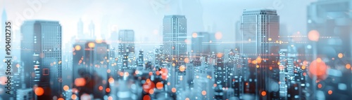 Abstract futuristic cityscape with digital and blurry effects representing modern urban life and technology innovation.