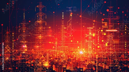 Abstract futuristic cityscape with glowing lines.
