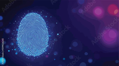 Abstract futuristic digital fingerprint illustration with glowing lights on a dark background.