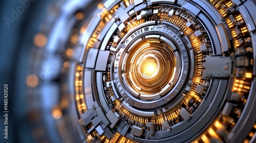 Abstract Futuristic Metallic Mechanism 3D Render