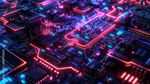 Abstract futuristic neon circuit board