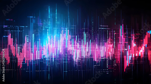 Abstract Futuristic Neon Cityscape With Glowing Lines