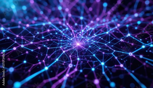 Abstract Futuristic Network Deep Purple and Cyan Pathways of Luminous Connections