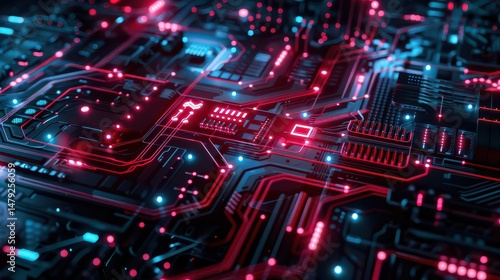 Abstract futuristic technology background with glowing neon lines.