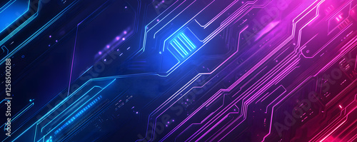 Abstract Futuristic Technology Background with Glowing Neon Lines and Circuit Board Design