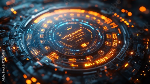 Abstract futuristic technology interface with glowing lights.
