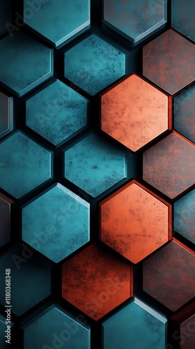 Abstract Geometric Background Featuring Hexagonal Patterns in a Beautiful Combination of Blue and Orange.