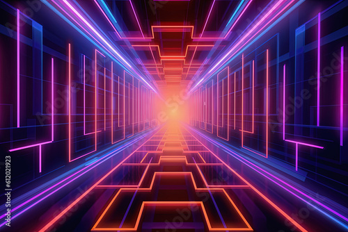 Abstract geometric background with colorful neon lines. Light music show scene. Generative AI