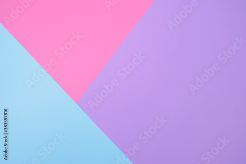 Abstract geometric color paper background. Minimalistic shapes and lines in rose, blue, violet, lilac, mauve colours. Copy space backdrop for your design or text, wedding greeting, postcard, brochure