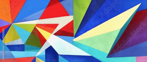 Abstract Geometric Composition with Vibrant Colors and Dynamic Triangular Shapes in Modern Art Style 4k Wallpaper