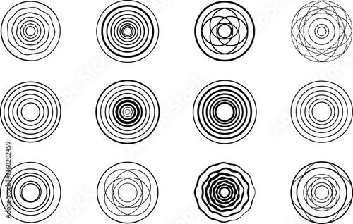 Abstract Geometric Concentric Circles Mandala Designs, Black and White