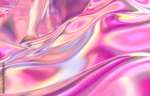 Abstract geometric crystal background, iridescent texture, liquid. 3d render.