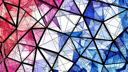 Abstract geometric design. Colorful triangular shapes with black lines dividing