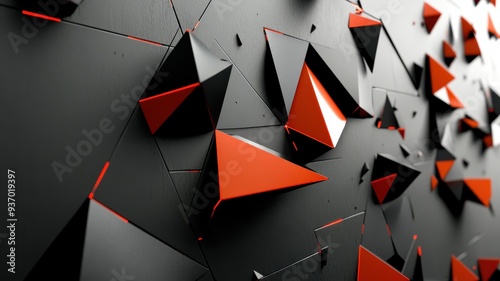 Abstract geometric design featuring black and red triangular shapes, creating a modern and stylish visual composition.