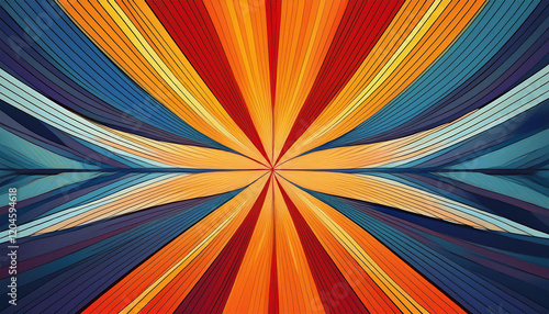 abstract geometric design featuring bold radial stripes in orange yellow blue and red tones forming a dynamic starburst pattern ai generative