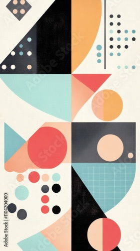 Abstract geometric design featuring colorful shapes and patterns with a modern aesthetic