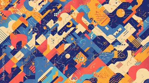 Abstract geometric design, vibrant colors, dynamic shapes, background texture, website banner