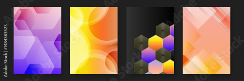Abstract geometric designs suitable for backgrounds, branding, digital art, and presentations. Versatile and modern graphics with gradient colors.