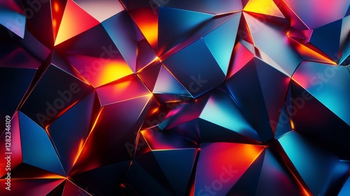 Abstract Geometric Faceted Background with Vibrant Red and Blue Artificial Light