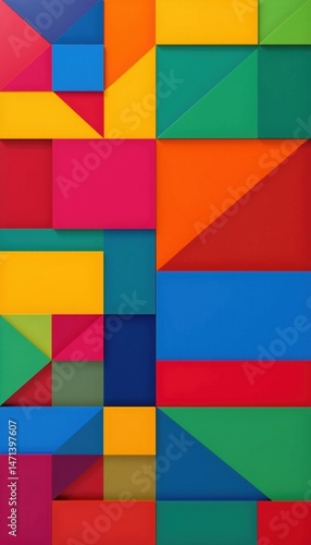 abstract geometric grid position in primary colors, place the subject on the left side of the image and provide ample space on the right for textual content