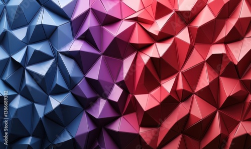 Abstract geometric low-poly background; red, blue, purple gradient; design texture