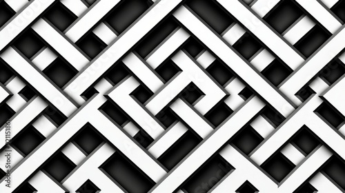 Abstract geometric pattern featuring intricate black and white woven design. Perfect for modern backgrounds and artistic projects.