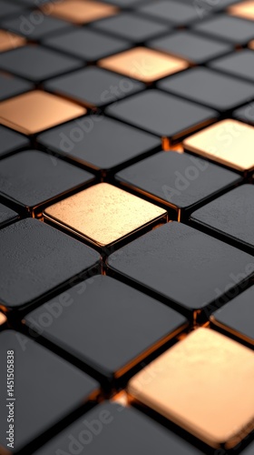 Abstract Geometric Pattern of Dark Gray and Copper Cubes