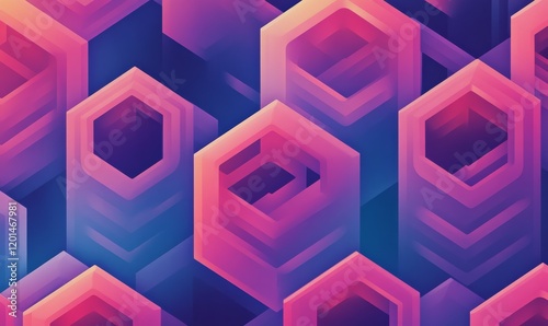 Abstract Geometric Pattern of Interlocking Hexagons in Pink and Purple Hues