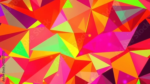 Abstract Geometric Pattern of Vivid Triangles and Bright Colors in a Kaleidoscope of Shapes