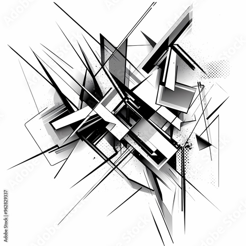 Abstract geometric pattern with sharp lines and angles in black and white.